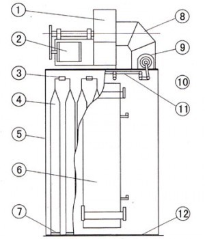 (1)箱體:包括⑤殼體④濾袋⑥檢修門⑦濾袋套箍,花板,箱體設計耐壓2500Pa;