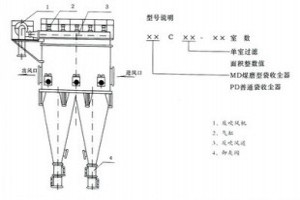 MDC: 表示煤磨型袋收塵器 ××—:表示單室過濾面積整數值 —××:表示室數 | ||||