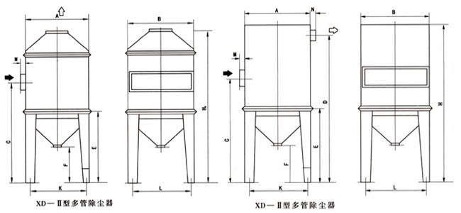 XD—Ⅱ型多管旋風(fēng)除塵器內(nèi)的旋風(fēng)子是采用鑄鐵或陶瓷制造的,厚度大于6mm,因此有良好的耐磨性能。它是工業(yè)鍋爐煙氣除塵和其他粉塵治理的理想設(shè)備。